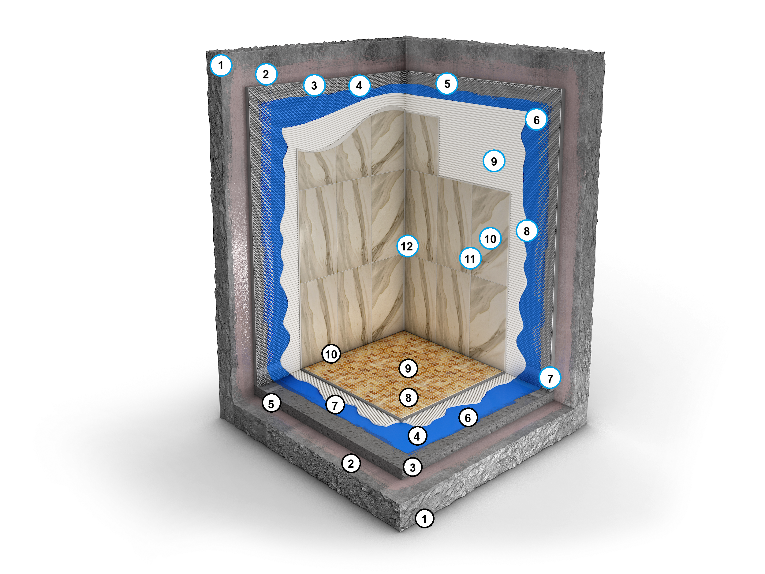 Система облицовки SPA, хаммамов под мозаику и плитку