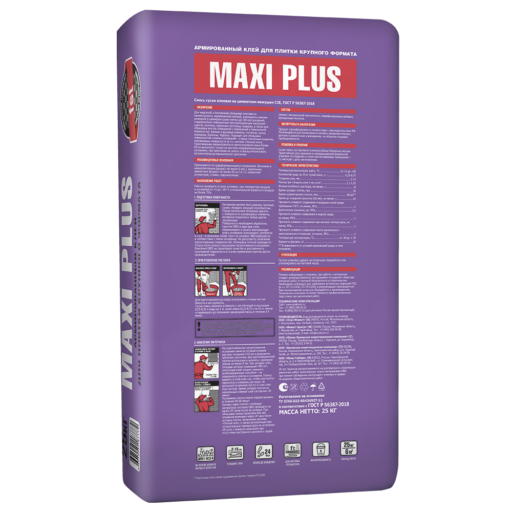 Подходит для облицовки поверхностей сложных оснований – старые плиточные покрытия, нагреваемые поверхности (в т.ч. система «Теплый пол»). Приклеивание керамогранита и камня размером грани более 60 см выполнять только на жесткие недеформирующиеся основания, при креплении на цоколь и фасад использовать вспомогательное механическое крепление.
