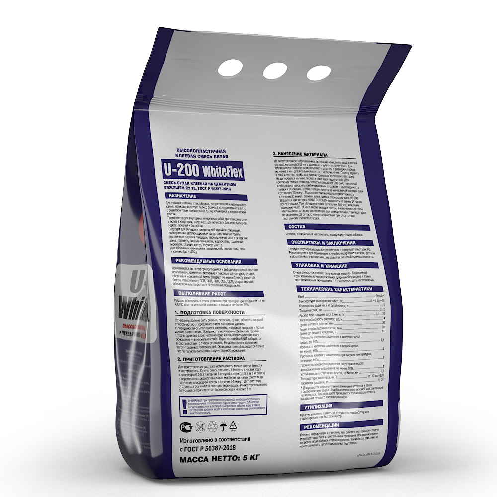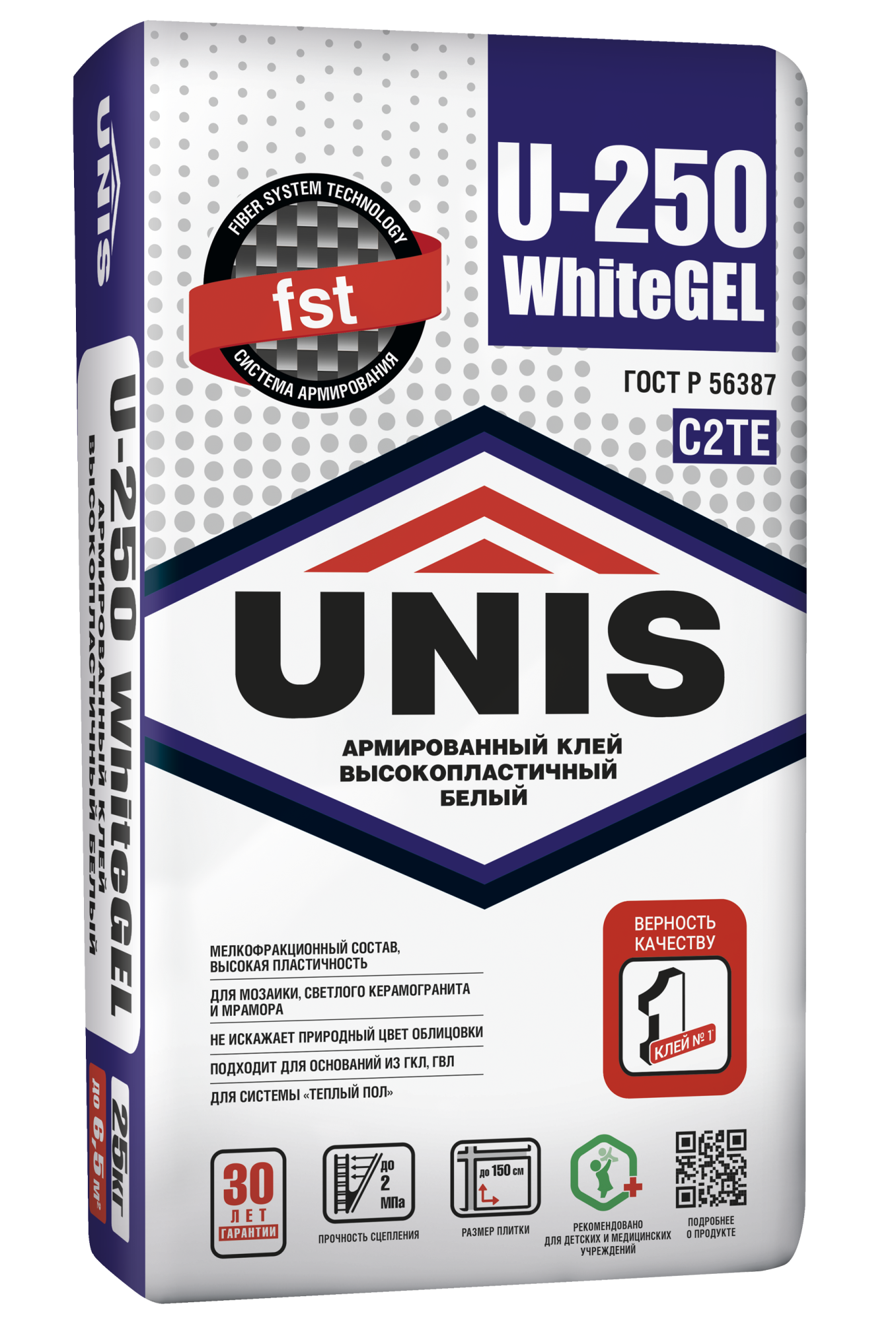Высокопластичный белый армированный клей для плитки любого типа и формата