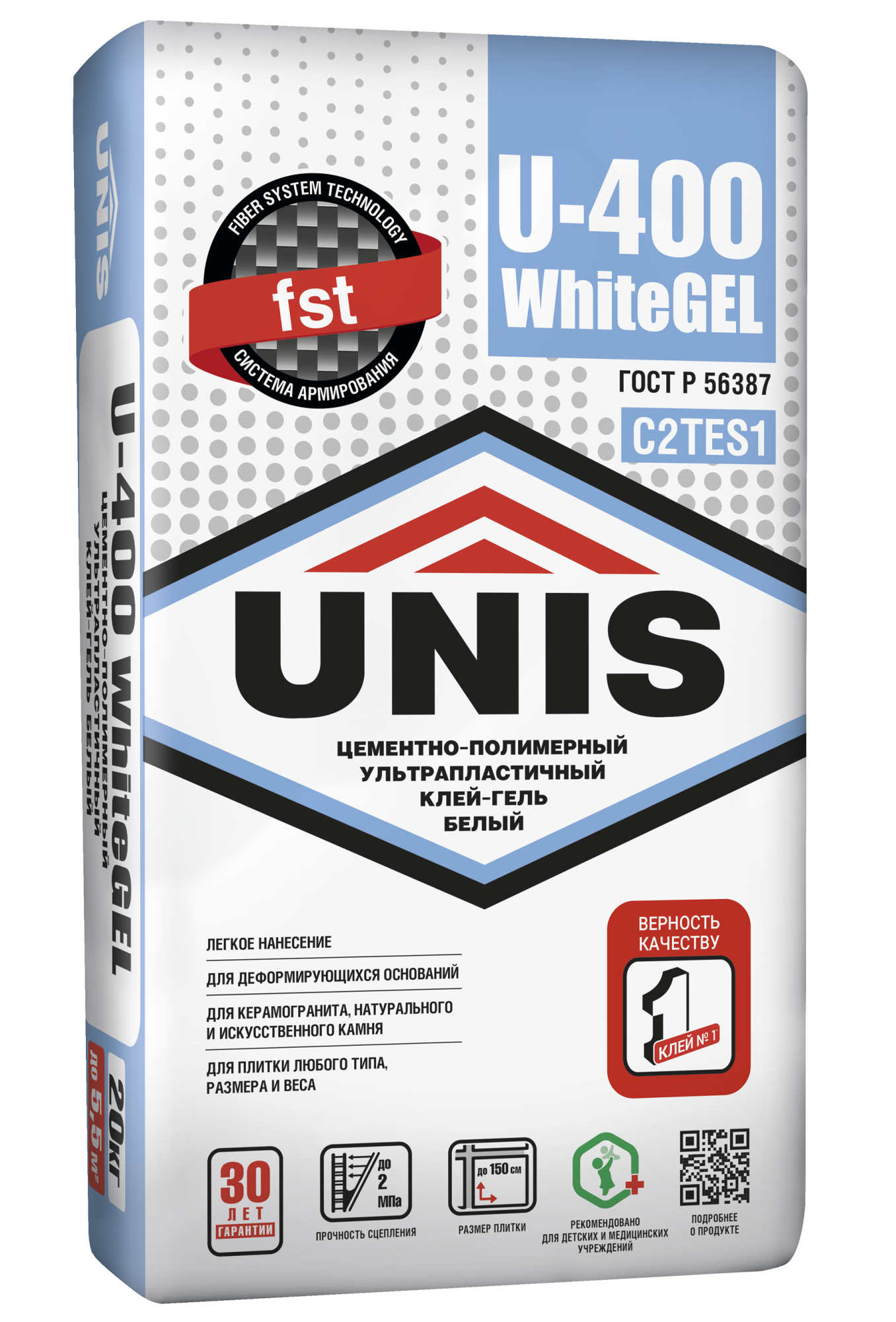 Белоснежный мелкофракционный гелевый клей без песка с особо мягкой и пластичной консистенцией раствора для плитки любого типа и формата. Предназначен для ответственных работ в местах с деформационными (компенсирует деформации основания и облицовочного материала), ударными и вибрационными нагрузками, резкими температурными колебаниями, с высокой пешей, транспортной нагрузкой. Может применяться в качестве затирки межплиточных швов. Подходит для укладки премиальных видов плит из природного камня, стеклянной и каменной мозаики, керамогранита (в т.ч. с размером грани плитки до 3 м), искусственного камня, керамики, клинкерной плитки, для возведения перегородок из стеклоблоков и создания декоративных панно и малых художественных форм.