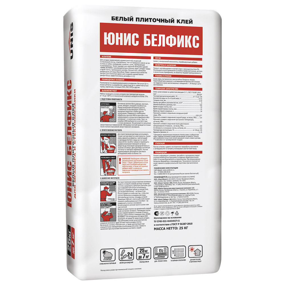 «ЮНИС БЕЛФИКС» рекомендуется для сложных задач: укладки поверх старой плитки, применения в системе «Тёплый пол», облицовки резервуаров для воды (бассейны). Может применяться в качестве затирки для плиточных швов и для создания художественно- декоративных эффектов (панно, рельефы и т.п.).