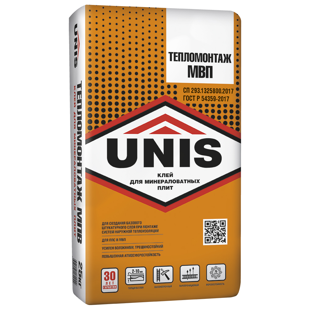 Для крепления минеральноватных теплоизоляционных плит. Для внутренних и наружных работ на объектах индивидуального жилого строительства. Для создания на поверхности теплоизоляционных пенополистирольных плит базового штукатурного слоя (с использованием фасадной стеклосетки) следует применять UNIS Теплофасад или UNIS Теплофасад S.